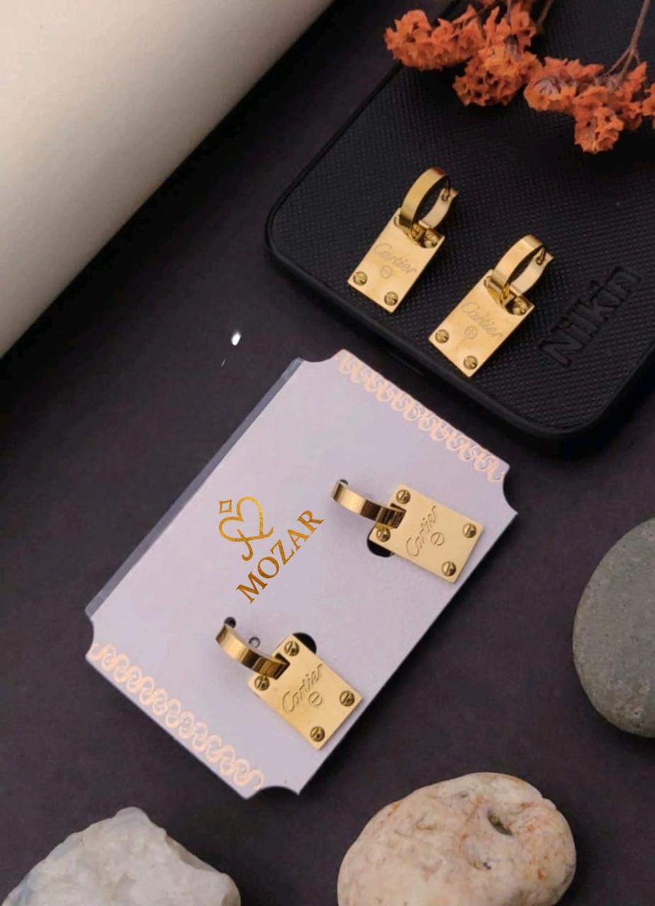 Add a bold twist to your look with these lock-style hoop earrings, inspired by designer luxury. Crafted in premium stainless steel with an 18K gold plating (not real gold), they’re anti-tarnish, durable, and built to stand out. The detailed screw-like design gives it an industrial luxe vibe perfect for streetwear or classy fits.