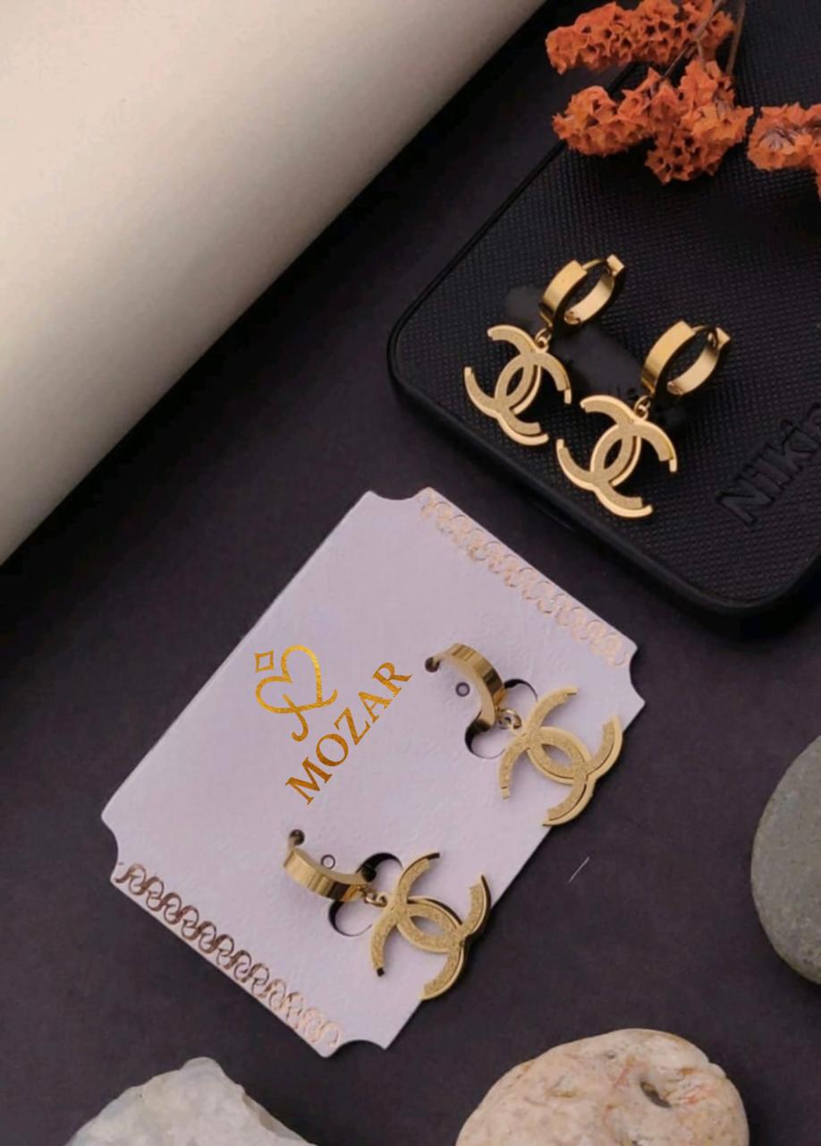 Add a touch of iconic elegance with these CC-inspired gold drop earrings. Crafted from premium non-tarnish metal, these earrings combine luxury style with everyday wearability. Lightweight, bold, and unmistakably chic.